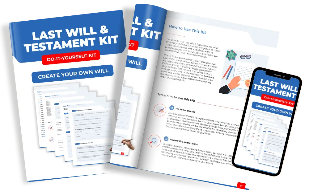 Get a simple, step by step Last Will and Testament kit that helps you organize your wishes, protect your loved ones, and avoid confusion.